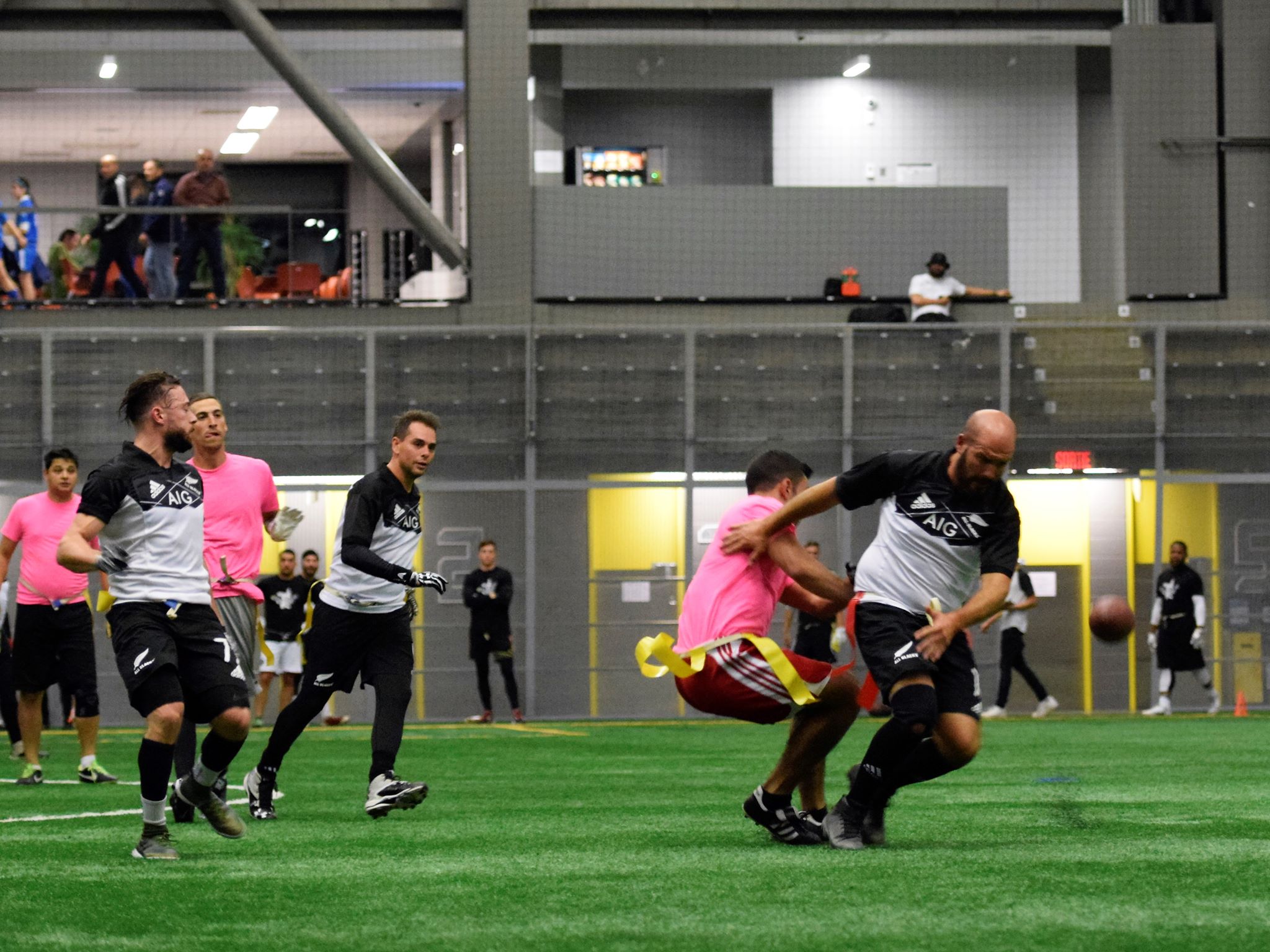 La première moitié du match fut nettement à l’avantage de #NR. Ces derniers ont rapidement pris trois possessions d’avance dans le temps de le dire. Leur défensive n’a donné que des miettes à l’attaque de top secret. En fait, Top Secret n’ont pas eu de premier jeu lors de leurs 3 premières séquences à l’attaque. Au passage, Ryan Lelinowski a réalisé sa première de deux interceptions justes avant que #NR marque leur troisième touché. Par la suite, Top Secret ont réussi à traverser le terrain de peine et misère avant de voir Félix Galarneau attraper un ballon bas sur un tracé au crochet pour inscrire son équipe au pointage. Seul moment de réjouissance, alors que Corey Pecker a encore réussi à rejoindre l’un de ses receveurs pour un autre touché en première demie.
