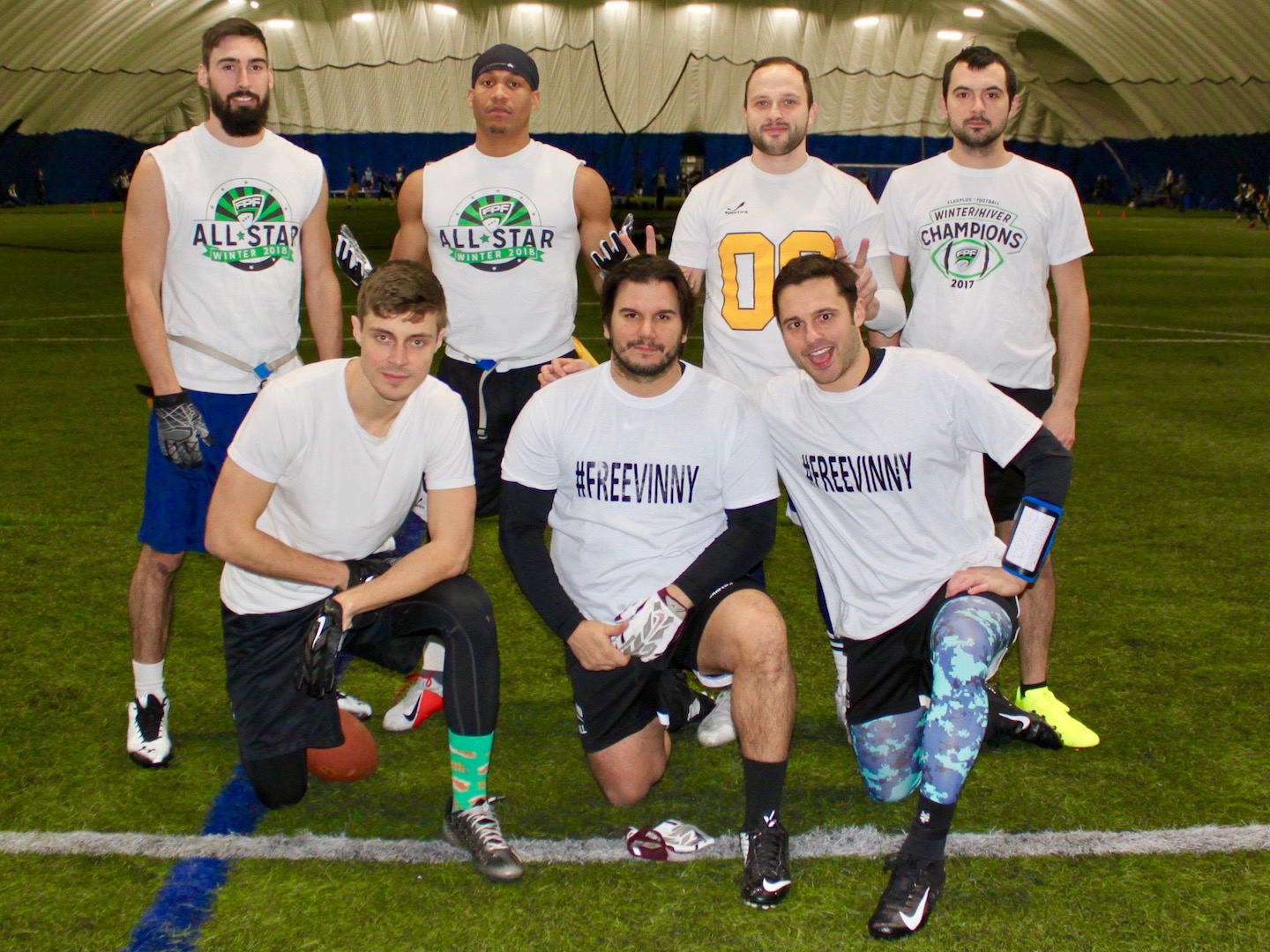 What actually happened: The roster silliness continued. Cory Pecker was absent for #NR and was replaced by Ryan Kastner. Not a bad switch but Ryan runs a tremendous amount of timing patterns and having him fill in for a game does not always play to his strengths. He put up some great numbers as he finished 24-30 for 260 yards with no INTS. The problem is that they only generated 4 TDs with that yardage. Turnovers on downs are not reflected on the stat sheet but they play just as big a part as any INT. The Braves were missing Georges Gariepy but added Tackle Machine M-A Lapointe to replace him on defence. Jonathan Maheu did what he normally does as he finished 22-27 for 249 yards and 6 TDs. JD Chevalier and Mike Pierrecin each chipped in 2 TDs and Jesse Dupuis (Alpha-Ts) also found the end zone. With the # of Braves playing on the Alpha-Ts roster it is cool to see the reverse also come to happen.