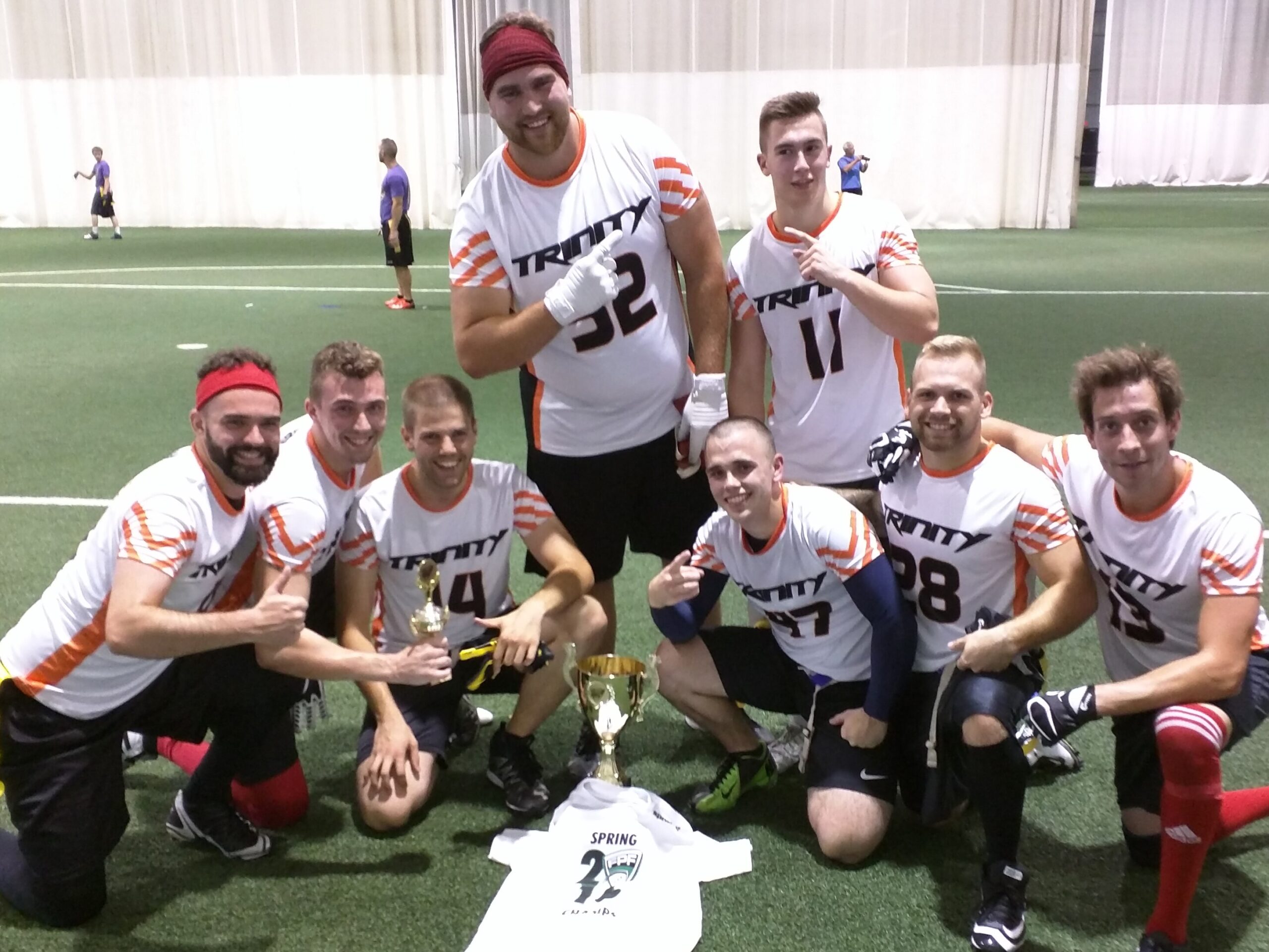 After talking amongst themselves, both side officials called the play a touchdown, as they deemed that Vincent Marquis flag had crossed the goaline as he made the catch. (remember in FPF, the ball does not have to cross the line to ensure a touchdown) Trinity started jumping for joy, while as expected, the Smokin Axolotls were enraged by the call. Instant replay in the broadcast area, showed that the correct call was made. Final score Trinity 19-13.