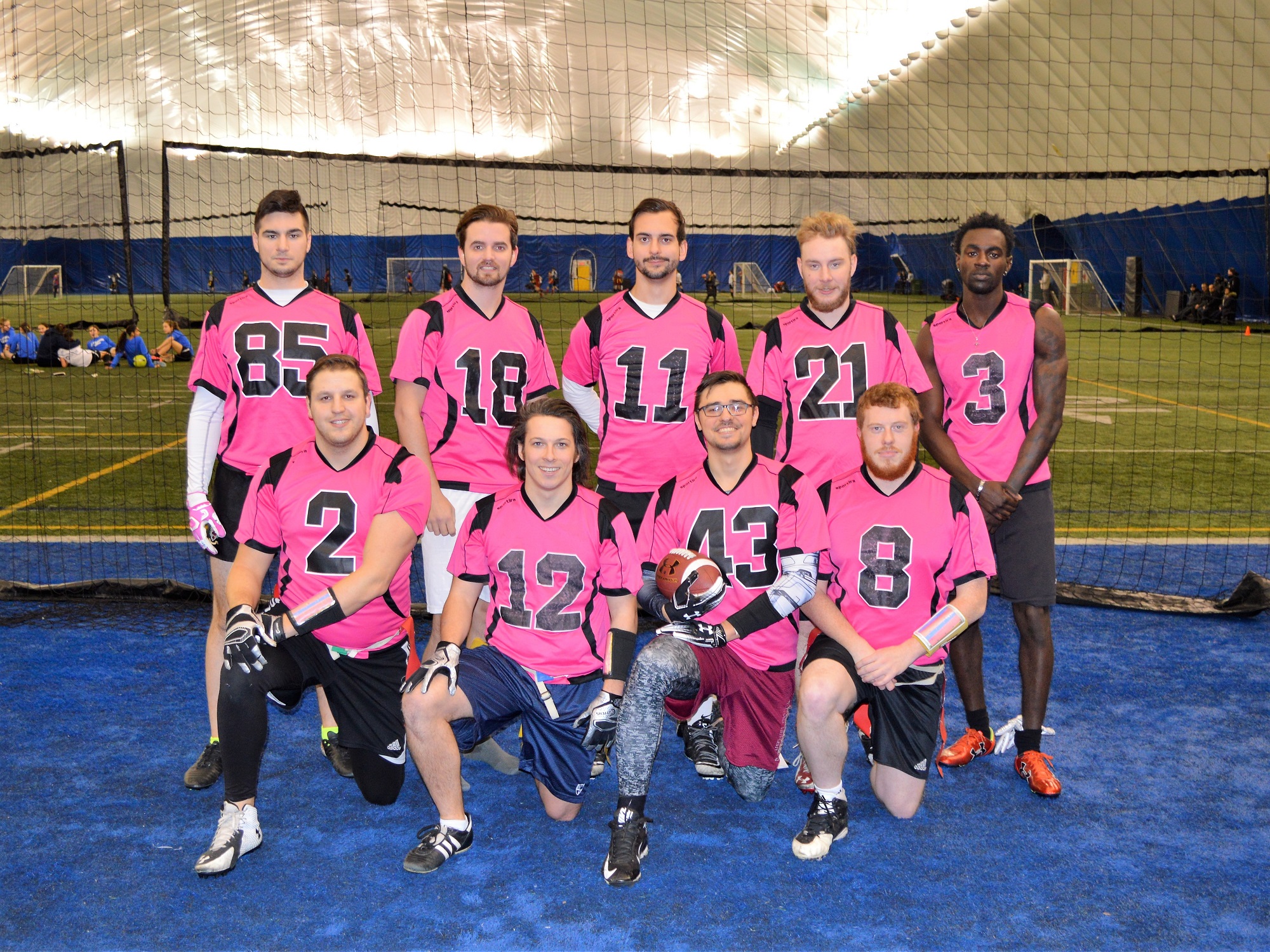 It doesn’t take a game like that to feel part of the family, me and the Addona’s have developed a strong relationship in the past 5 years. We didn’t know each other before then. In 2011 i was asked to help punch panda (the worst team in the worst division) to try and win a game, and if i managed that they would make the playoffs and gain valuable experience. I’ve been coaching football for the past 8 years so helping teams with no experience and building a competitive team is something i really enjoy. Anthony Carbone the qb at the time was a former Mcgill pitcher, and his brother Michael Carbone was a NCAA athlete also in baseball, I knew there was a lot of untapped potential. 2 years later the Carbone’s invited their cousins, the Addonas to come join the team and that year the team went undefeated. Punch panda became Checkmate but a lot of that core is now out of that league. Me, the Addonas and Paolo Della Rocca continued for a couple seasons together and friendship grew. It’s now become the thing I’m most fortunate about this league having met and gotten close to those guys . I’ve been to their weddings, we see each other outside of football, we’ve been to the hospital for each other, been through hard times, lots of on/off field joy and heartbreaks it’s as if we’ve known each other 20 years. So being that close, 1 big game doesn’t feel like im part of the family, i always feel part of the family. They are friends i will have for the rest of my life, football or no.