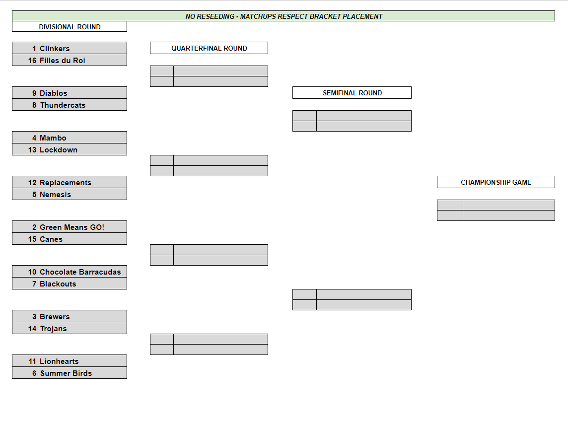 The Division E-2 playoff bracket follows a traditional format where the winners are not reseeded following each round like they are in all other divisions. As a result you can easily map out who you need to beat in each round in order to go all the way.