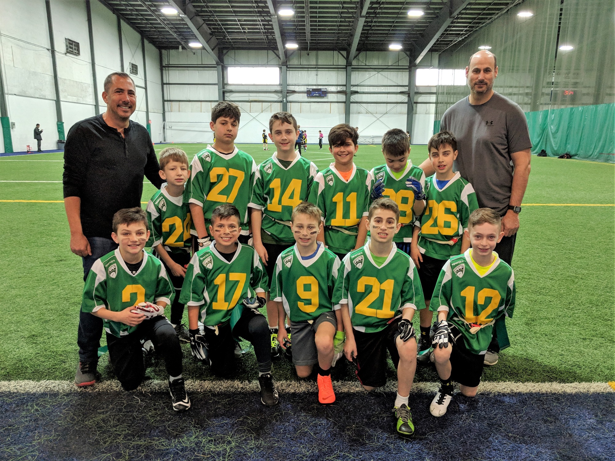 There is no denying the fact that the Sun Devils have a loaded roster. They are a combination of new players and returning players from last winter’s Thunder. Yes, that same Thunder team that went undefeated on their way to the Varsity championship last season. Now, they have Noah Lachance coaching to go along with the likes of Louis Vincent on the field to make for a nearly unstoppable team. Last season, Louis Vincent made his name as FPF Junior’s best rusher. This year, he is making just as much of an impact as a rusher while also taking over games as a receiver. The blistering speed that makes him such a devastating rusher also makes him a formidable receiver. He accumulated 63 receiving yards and a touchdown in only two receptions. Getting the ball to him was quarterback Danny Stamiris who completed a total of 11 passes for an impressive 167 yards as well as three scores. While Louis Vincent may have been the leading receiver in terms of yards, the sure handed William Bradford caught a team high seven catches and accumulated 59 yards and two TDs in the process. Also contributing to their offence was William Denis who, with two catches, tallied 43 yards and a score. While the Devils did a great job generating points, their defence not only stopped their opponents but also put points up on the board. Leading that scoring defence was the talented Joshua Almaleh who had three tackles and also picked off the Buffaloes twice and returned both for scores. Zachary Cyrenne also contributed to that strong defensive core with an interception returned for a TD to go along with and his three tackles. Finally, leading the team in tackles, was Danny Stamiris with four. With this victory, the Sun Devils showed why many consider them title favorites. They can do it all; score on offence, score on defence and shut down their opponents.