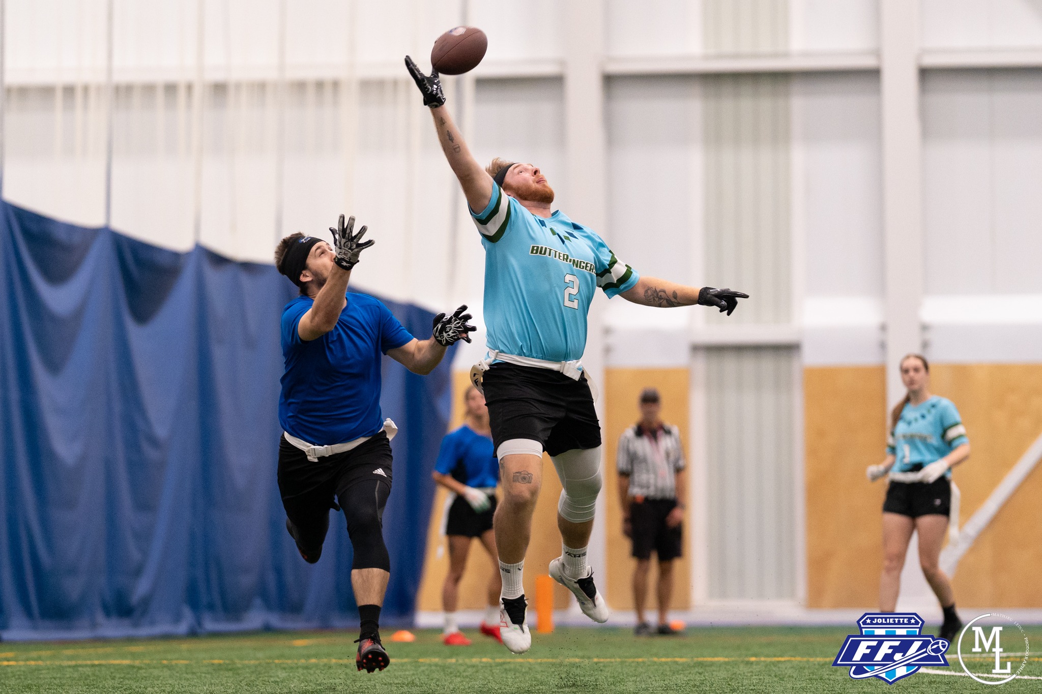 Ligue amicale qui a vu le jour il y a quelques années, organisée par 3 amis qui n’avaient comme seul objectif que de pouvoir jouer au flag football dans leur région. FFJ ne regroupait alors que 14 équipes de calibre quelque peu inégal, réparties dans 2 catégories masculines et féminines. Une première saison qui a rapidement dû être annulée après quelques semaines d’activité en raison de l’effondrement d’une partie du toit du complexe et il a fallu attendre 1 an presque complet pour la réparation afin de relancer les activités. Quelques années plus tard (et 2 autres interruptions causées par la Covid), Flag Football joliette se dresse maintenant parmi les plus grandes ligue de flag au Qc avec 44 équipes dans ses rangs. La qualité des équipes et des arbitres ne cesse de croître, sans parler de l’amélioration du contenu et du site web qui est maintenant digne des plus grandes ligues sportive amateures. Cotes des joueurs évolutives, statistiques individuelles et d’équipes avancées, peu de ligue au Québec peuvent se targuer d’en offrir autant, tout sport confondus. Vous pouvez d’ailleurs consulter notre nouveau site au www.flagfootballjoliette.com