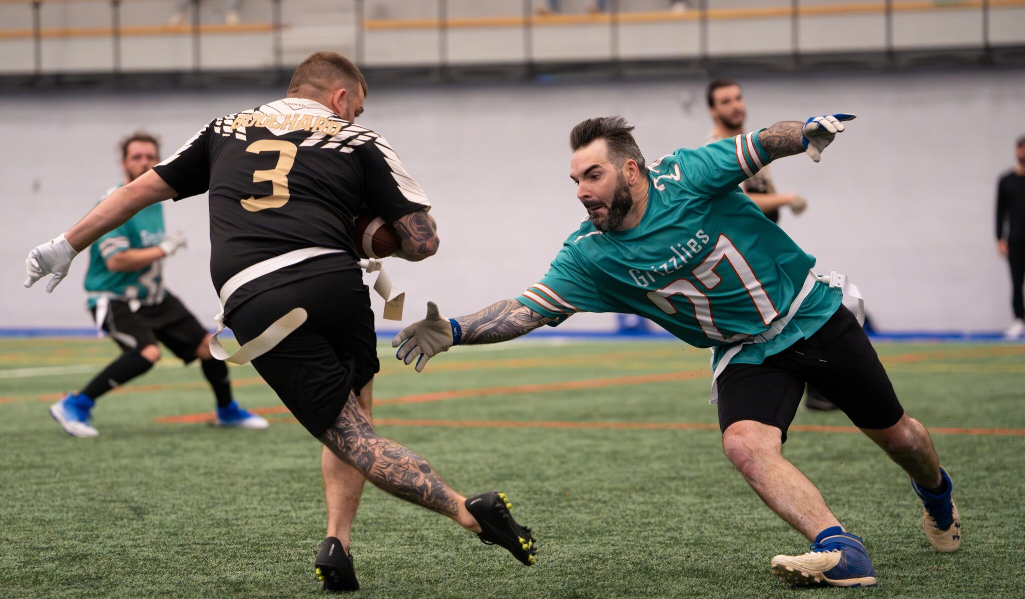 Le seul match en division 3 cette semaine se jouera entre une équipe expérimentée en Black Label et une équipe avec deux matchs d’expérience. Vincent Bellehumeur a connu une bonne entrée en scène la semaine dernière avec six passes de touché face aux Dragons. L’ajout de Ced Desy sera également à surveiller pour Black Label, alors qu’un joueur de division 1 comme Desy peut sans doute donner des ennuis aux Taverneux qui devront être prêts à jouer.