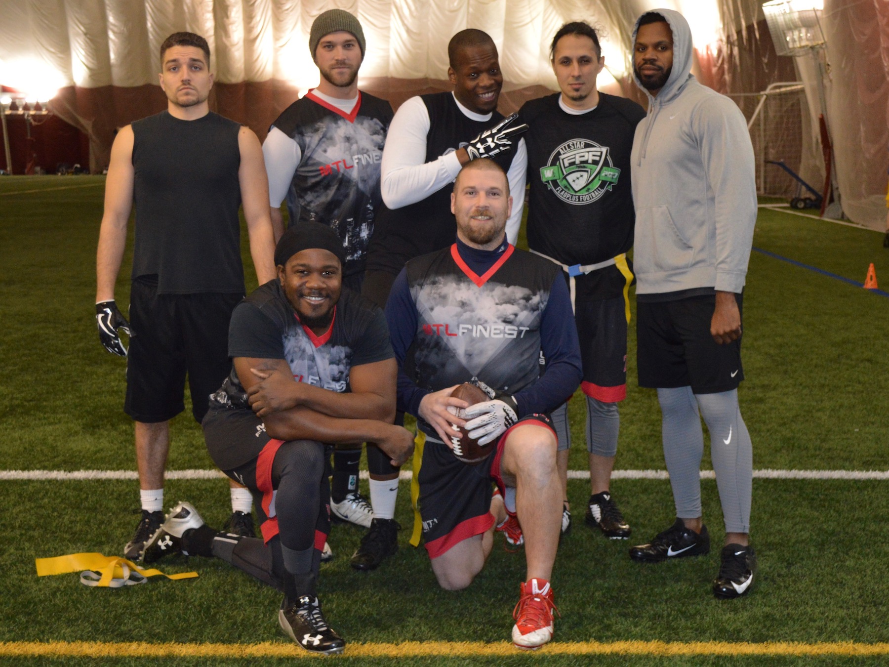Masciotra was loose in this one, peppering the ball around the field, but mostly to a springy Theo Ojeaha. Theo seems to have gotten his step back, as he was unstoppable down the right sideline, pulling in 87 yards and 2 TDs on 7 catches. The D-Boys were trailing at half, but put on their playoff caps at the break and showed Flag Moi L’Sac exactly why they’re perennial postseason favorites in Div 1.