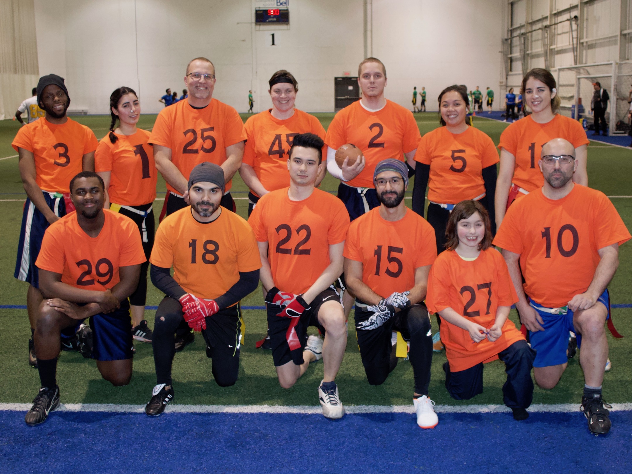 Finally, I have to talk about Kiss My End Zone’s dramatic win over Yin & Yang. For full disclosure, yes, KMEZ is my team. While you might have expected this game to be a high scoring affair, it was the opposite. Both quarterbacks were struggling to find their rhythm and it was the defence’s turn to shine. KMEZ struck first with a 40-yard TD pass to the speedy Jonathan Hared. On the ensuing drive, Y&Y looked poised to score until they were picked off in the endzone. That pick set the tone for countless more defensive stands by both teams. Y&Y scored twice quickly before the break and it looked like they were in control of this one. They were up 12-7 at the half and received the ball to start the second. In that second half, Hared went to work. He proposed a key modification to KMEZ’s defence. That new defence stopped Y&Y from scoring. Joshua Vazquez, Alexandre Blais and the rest of KMEZ’s offence also improved their game and they jumped out to a 19-12 lead. The game came down to one last drive. Y&Y needed to score. Just when Y&Y looked like they were poised to score, Abigail Cockerton deflected a pass and Hared picked it off to seal the game. This was a great game, very high in emotion and any rematch between these two teams is sure to be an interesting affair.