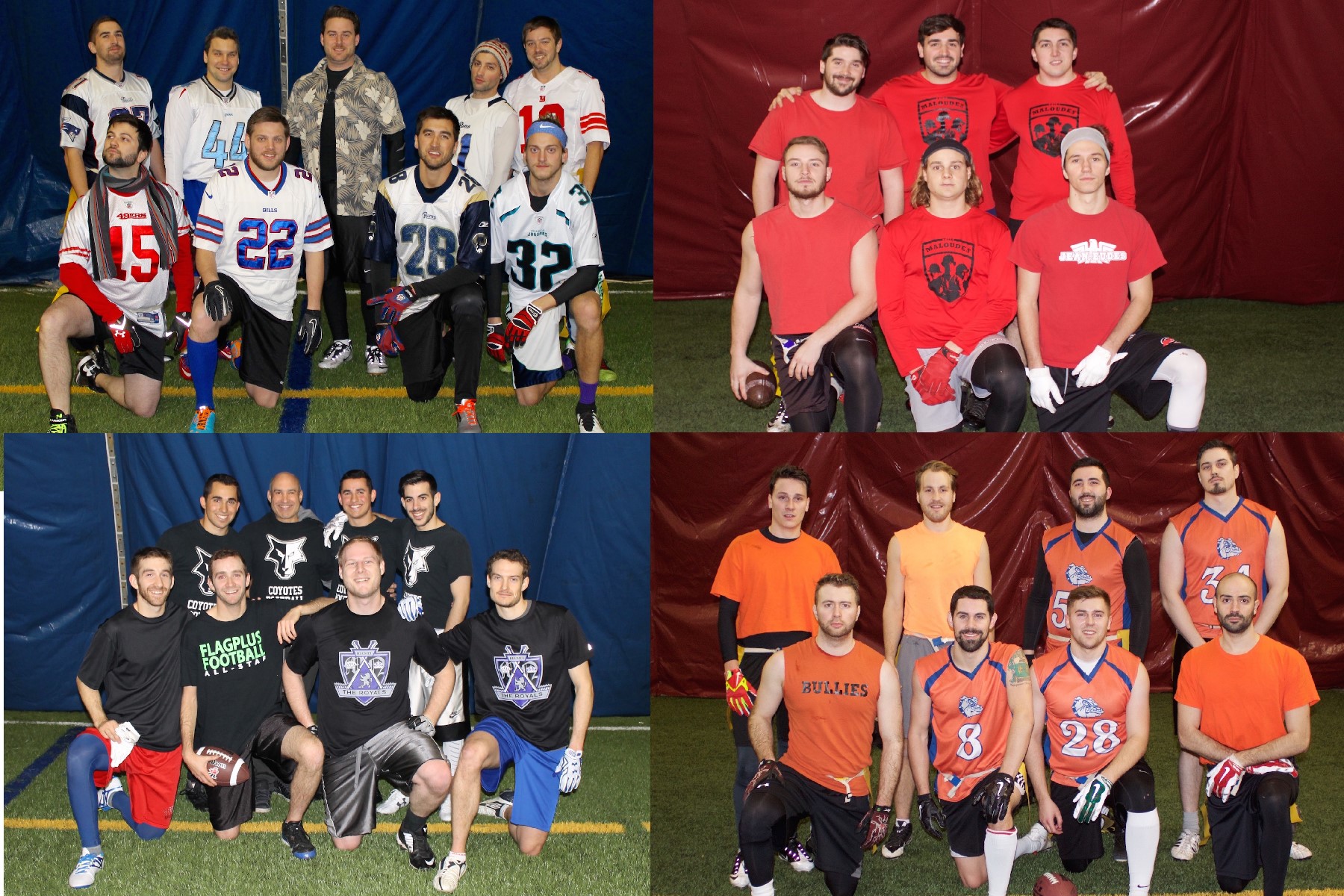 En division 4A, dure d’ignorer la défaite des Maloudes, qui se sont incliné 18-10 face aux surprenants no name. Plusieurs croyait, moi inclus, que Les Maloudes vogueraient vers les séries (ou au moins jusqu’à la semaine #11) immaculé, mais l’aura de puissance de ces derniers a subi plusieurs impacts. Donnons crédit à no name, qui fut excellent en protection de « red zone », limitant Anthony Beauchamp-Frezza à un seul touché, malgré 212 verges par la passe. Ailleurs, Jagerbomb a surpris Eskimo Brothers, malgré l’absence des deux cibles préféré de Simon Duchesne, Jean-Félix Daloze et Cédric Nuckle. On peut aussi compter parmi les surprises la victoire de ZOO contre Frosty Bronsons, par la marque de 32-14. Malgré leur élimination, Frank Kaye et Co. peuvent continuer de jouer les trouble-fête, en montrant la porte à Team Ethnik cette semaine.