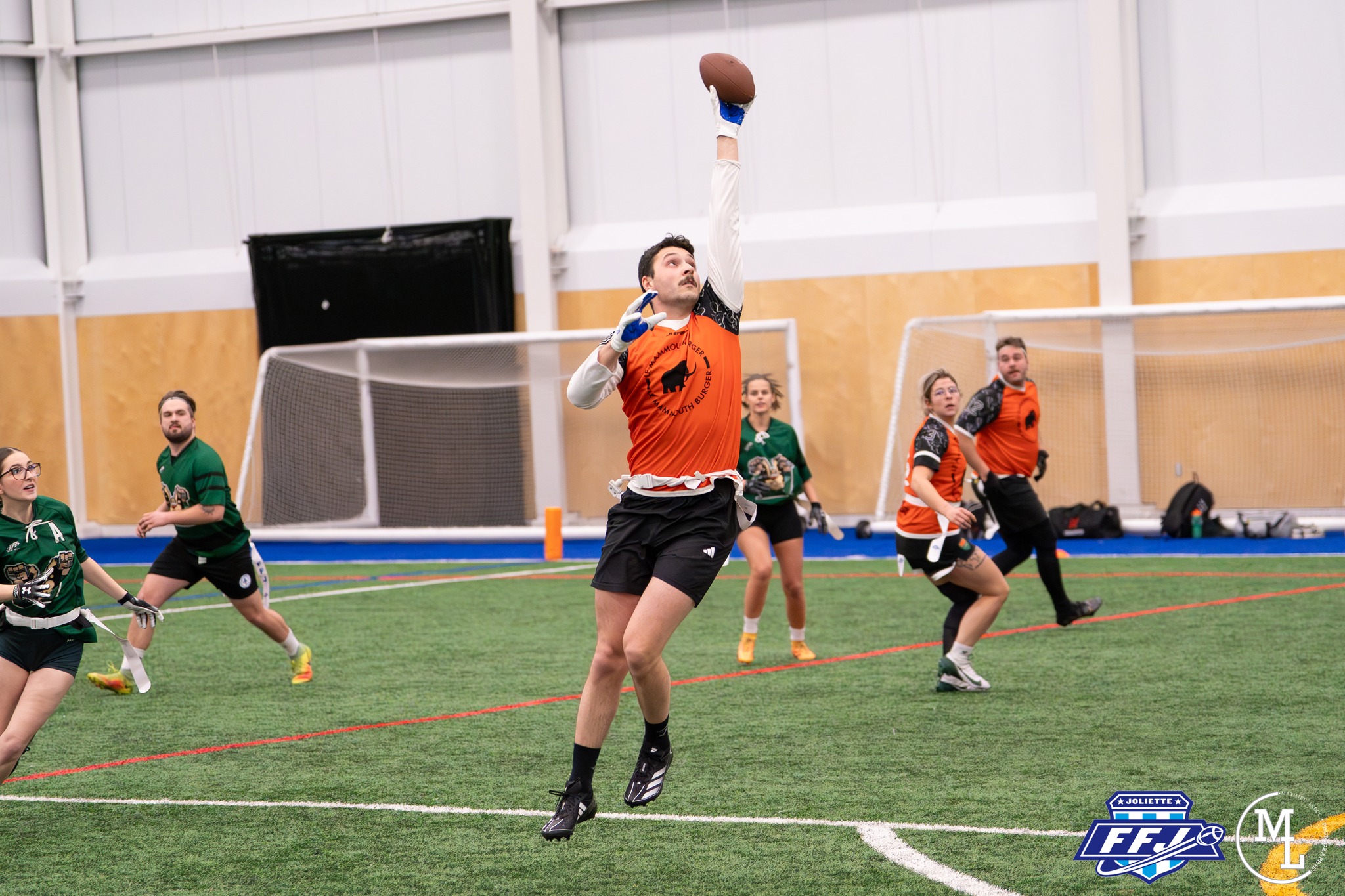 On avait hâte de voir les Campagnards affronter une équipe plus expérimentée, et ils ont bien répondu au défi, mais ce ne fut pas de tout repos. Ils ont même tiré de l’arrière 6-13 en début de partie, mais une interception de Louis Bellemare retournée pour un touché a complètement changé le momentum de côté. Les équipes se sont échangé des touchés par la suite, mais les Daiquiris n’ont pu suivre le rythme de l’attaque des Campagnards. Le quart des Campagnards, Jorik Belley, a encore connu du succès avec 6 passes de touchés. Ludovic Harrisson et Thomas Lachappelle ont chacun inscrit une paire de touchés, tandis que Béatrice Ayotte et Mégane Beauséjour ont chacune marqué 1 touché. Les Daiquiris mené par Rebecca Malo ont montré de belles séquences offensives, mais ils n’ont pas pu suivre le rythme effréné imposé par l’attaque des Campagnards. Une victoire convaincante qui confirme les ambitions des Campagnards cette saison. Anthony Hubert s’est démarqué avec 3 réceptions pour des touchés, tandis que Andréanne Cadorette a contribué avec 1 touché et une interception.