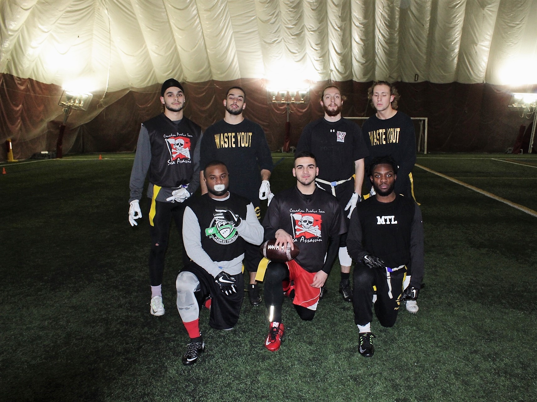 • Rainmakers vs Flag Moi L’Sac: The nightmare continues for Rainmakers as week 7 rolled in. With a 25-6 lead at the half, it looked pretty much over with an entire half of football left to play as FMS really dominated on both sides of the ball. Francois Rocheleau continues to amaze as he emerged as a top receiving threat alongside Sam Nadeau and Guillaume Robert in this week’s game and made Ryan Kastner’s life hell with 5 sacks on the night. Flag Moi L’Sac’s offence did pretty much whatever they wanted as Alex Nadeau Piuze posted a perfect QBR and didn’t throw a single incompletion on the night before allowing Francois Lebeau to take the helm and play the final drive of the game (on which Alex ended up on the receiving end of the touchdown). It looked like a “more fair” game with Francois Lebeau playing QB for FMS as Rainmakers’ defence finally had life and made a handful of plays, but it was too little too late as the game was way out of reach and FMS improved their record to 5-1; rolling this season.